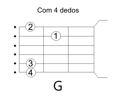 Veja a disposição das notas do acordes nos modelos do Sol com 4 e 3 dedos: